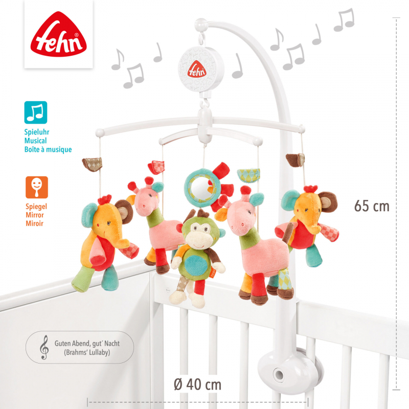 Wind-up mobile with musical melody ?Brahm?s Lullaby? and cute figures for calming - easy attachable at the crib for babies from 0-5 months