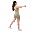 Të krijuara nga tekstil i lehtë si poliamidi PA, këto pantallona të shkurtra janë transpirante dhe largojnë lagështinë, duke ju siguruar që të qëndroni të freskët dhe të thatë gjatë stërvitjeve ose gjatë gjithë ditës. Ndërtimi i qetë minimizon gërvishtjet, ndërsa efekti shtytës e ngre dhe thekson figurën tuaj për një siluetë të këndshme. Të dizenjuar me material antibakterial, këto pantallona të shkurtra ju mbajnë të freskët dhe të sigurt, duke i bërë ato ideale si për aktivitete aktive ashtu edhe për veshje të përditshme.