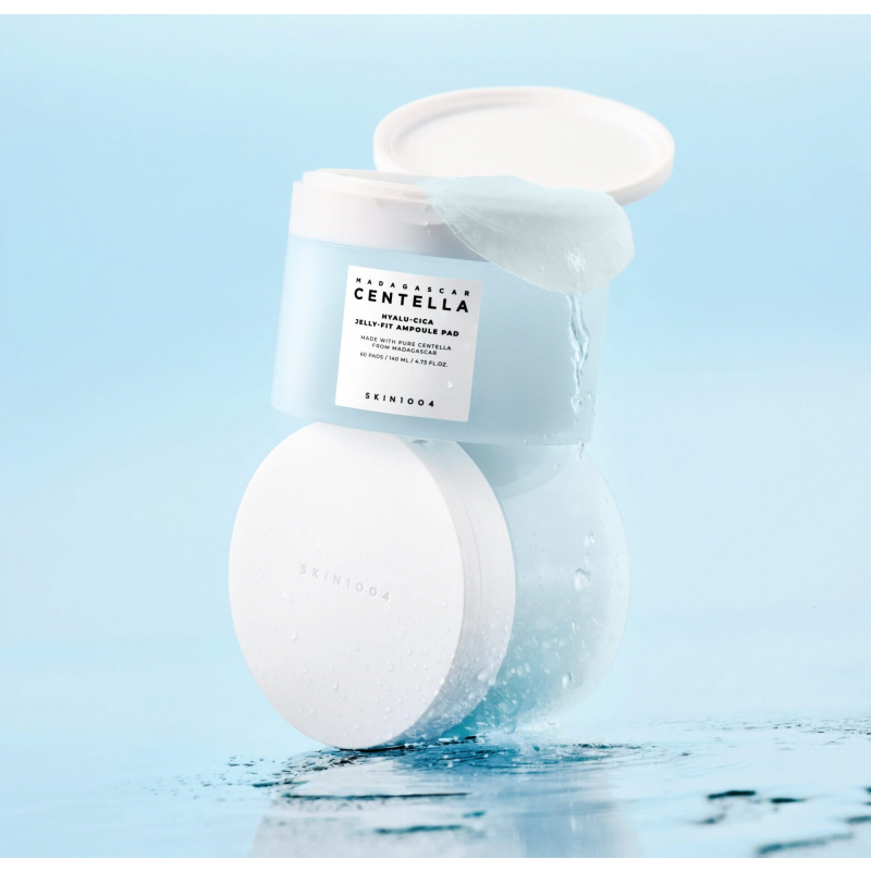 Skin1004 Hyalu‑Cica Jelly‑Fit Ampoule Pad janë toner pads i krijuar për të hidratuar dhe qetësuar lëkurën në mënyrë efektive. Secili pad është i mbushur me xhel ampoule që depërton në sipërfaqe, duke ofruar ndjesi freskie dhe rehatie. Ekstrakti Centella Asiatica ndihmon në qetësimin e irritimeve dhe forcon barrierën natyrale të lëkurës. Kompleksi me 8 lloje të acidit hialuronik ofron lagështi të thellë dhe ndihmon në ruajtjen e hidratimit për orë të tëra. Niacinamide ndihmon në balancimin e yndyrës dhe përmirësimin e tonit të lëkurës, ndërsa PHA kryen një eksfolim të butë pa shkaktuar skuqje. Pads‑at kanë një teksturë xhelatinoze që ngjitet lehtë në fytyrë dhe siguron depërtim të vazhdueshëm të përbërësve aktivë.
