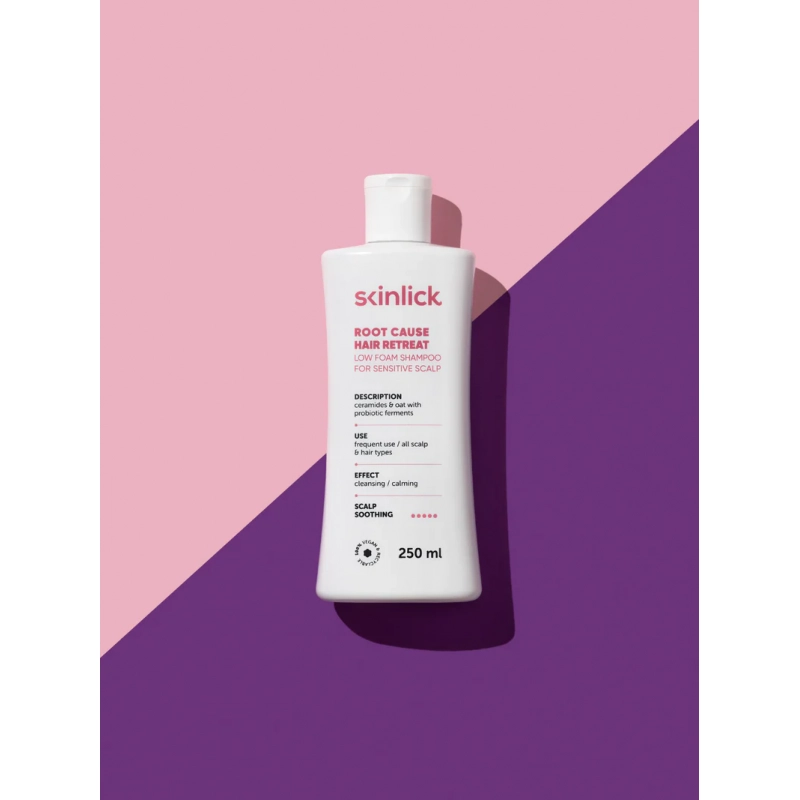 Shampo Skinlick Root Cause Hair Retreat është një shampo qetësuese me shkumë të ulët për skalpin e ndjeshëm që pastron dhe ushqen ndërsa ndihmon në zbutjen e flokëve tuaj.