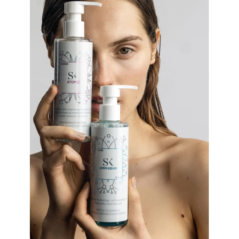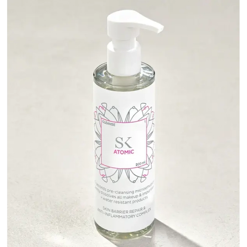 I krijuar si një produkt i përsosur si hapi i pare I pastrimit, për nevojat e lëkurës edhe më të ndjeshme me barrieren mbrojtese te demtuar (përfshirë lëkurën me dermatoporozë), Atomic është një mikro-emulsion i optimizuar me pH (pH 5,5) dhe jashtëzakonisht i butë, i krijuar për pastrimin e përditshëm, të thellë të papastërtive dhe grimit. Ky eshte nje product kyc I rutines tuaj, I cili shpërben shpejt shtresat e papastërtive të jashtme përfshirë ato të papërshkueshme nga uji (waterproof) pa e thare dhe pa e irrituar lekuren.