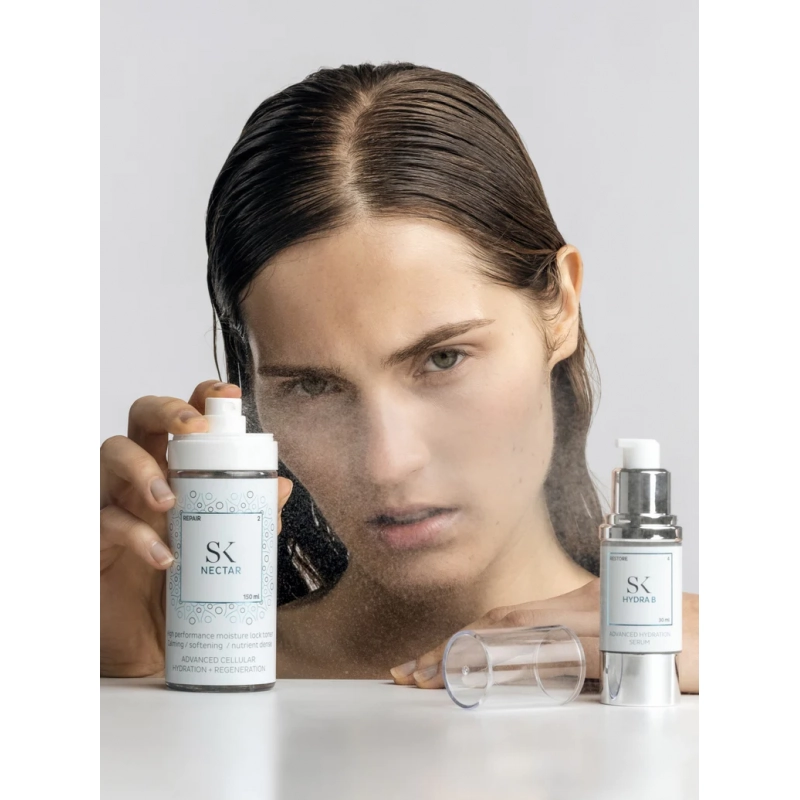 Skintegra Nectar është hapi i dytë i nevojshëm në rutinën e kujdesit të lëkurës për të gjitha llojet e lëkurës pasi rikthen me shpejtësi lagështinë e humbur të sipërfaqes dhe ngadalëson avullimin e saj nga lëkura në maksimum, duke forcuar kështu funksionin e saj si barrierë. Një kompleks i përbërë nga katërmbëdhjetë hidratues të fuqishëm të madhësive të ndryshme molekulare kombinohet me efektet qetësuese të agjentëve "të gjelbër" me origjinë natyrore. Ekstraktet e shijshme të aloe verës, xhensenit, kastravecit dhe ekstraktit të gjetheve të ullirit shoqërohen me ure, acid hialuronik dhe laktik, si dhe aminoacide si faktorë hidratues natyralë. Niveli i pH i Nektarit është miqësor ndaj lëkurës, pak acid dhe i formuluar në mënyrë optimale për të rivendosur ekuilibrin shumë të nevojshëm të lëkurës pas pastrimit.