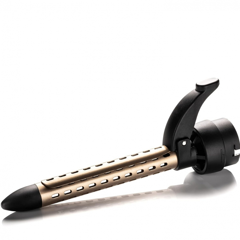 Aksesor Curly 19 mm, gjithashtu i veshur me qeramikë dhe keratinë, është perfekt për krijimin e kaçurrelave të vogla dhe të përcaktuara.