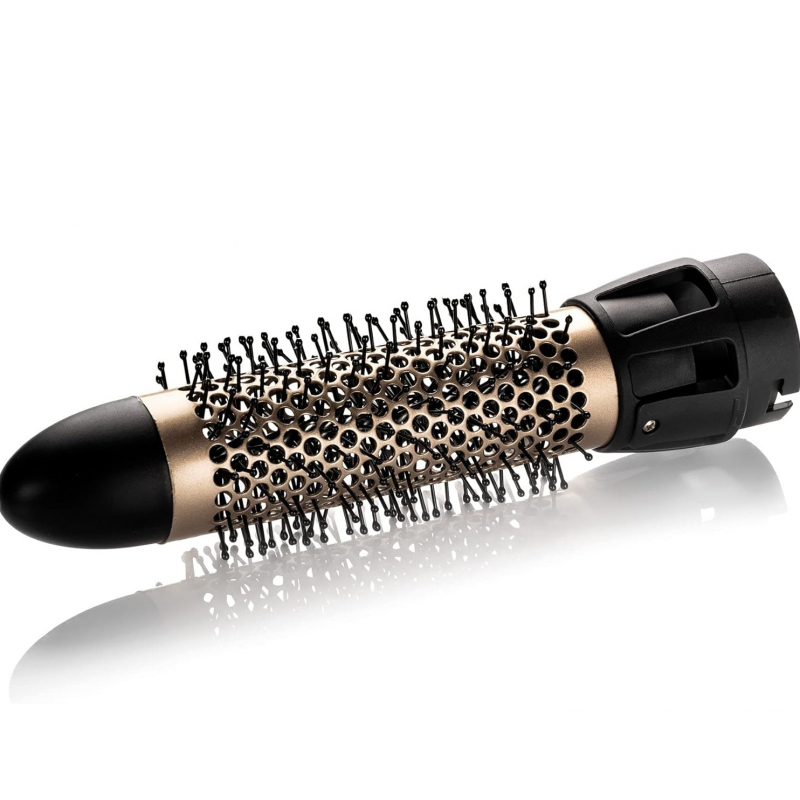 Flokë të drejtë ose me valë të buta dhe maja të stilizuara: thjesht përdorni aksesorin Extra Wavy, një furçë rrethore 32 mm, e veshur me qeramikë dhe keratinë. Mund të krijoni një stil natyral me valë ose një pamje të drejtë dhe të disiplinuar, pa frizz.