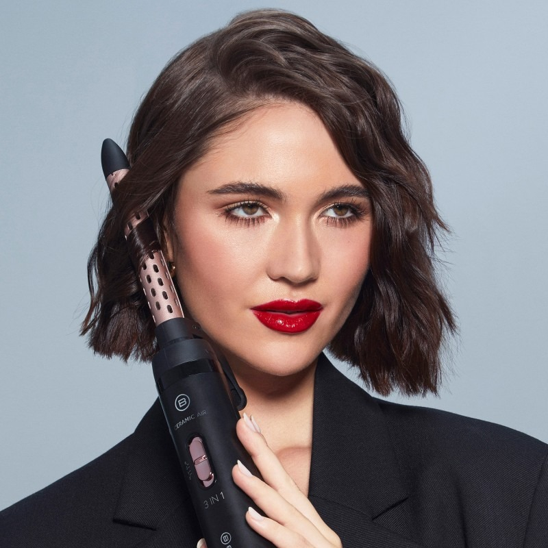 Zbuloni sa e lehtë është të bëni gjithçka me një mjet të vetëm! Bellissima Ceramic Air është furça e re stilizuese me ajër të nxehtë, me 3 aksesorë të veshur me qeramikë, e projektuar për të tharë dhe stiluar butësisht flokë të shkurtër dhe mesatarë, balluke dhe curtain bangs.