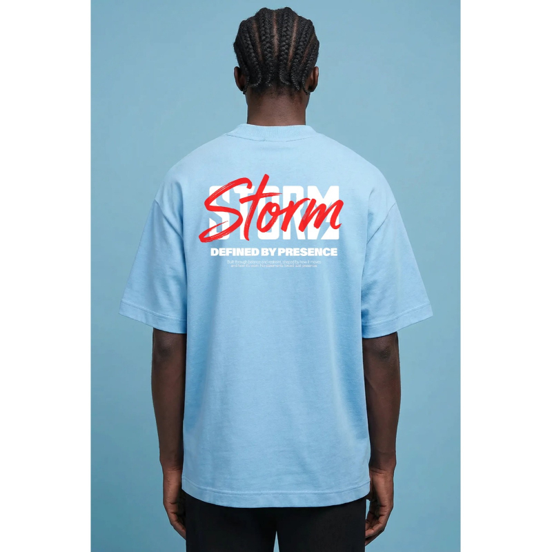 Light Blue Storm Capsule T-Shirt a fresh summer essential. Crafted from premium cotton-like fabric sourced from Toray Industries in Australia, this lightweight piece delivers comfort and breathability for warm days. Designed in a sky-blue tone with a clean white Storm logo and a bold red brush detail, blending minimal style with a strong identity.