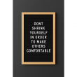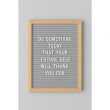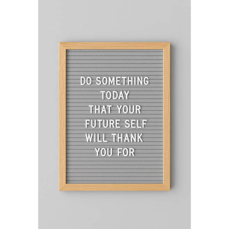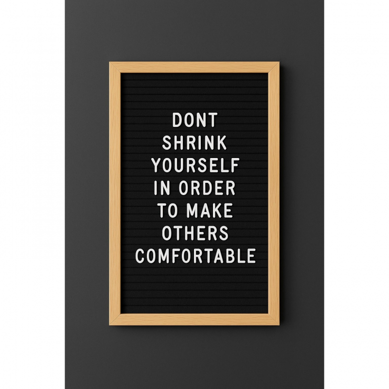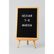 Kjo tabelë dekorative është një kombinim i elegancës minimaliste dhe mesazheve me ndikim. Me një fushë klasike me teksturë të zezë, ideale për të theksuar shkronjat e bardha plastike, dhe kornizë prej druri të çelët, ajo ofron një pamje të ngrohtë dhe profesionale. Dizajni i saj vertikal dhe i madhësisë standarde, e bën perfekte për ekspozim në ambiente si dyqane, zyra, studio kreative apo evente speciale. Mbështetet në një këmbalec të integruar, duke e bërë të qëndrueshme dhe të lehtë për t’u vendosur kudo. Ideale për urime, thënie motivuese apo informacione të përditshme.