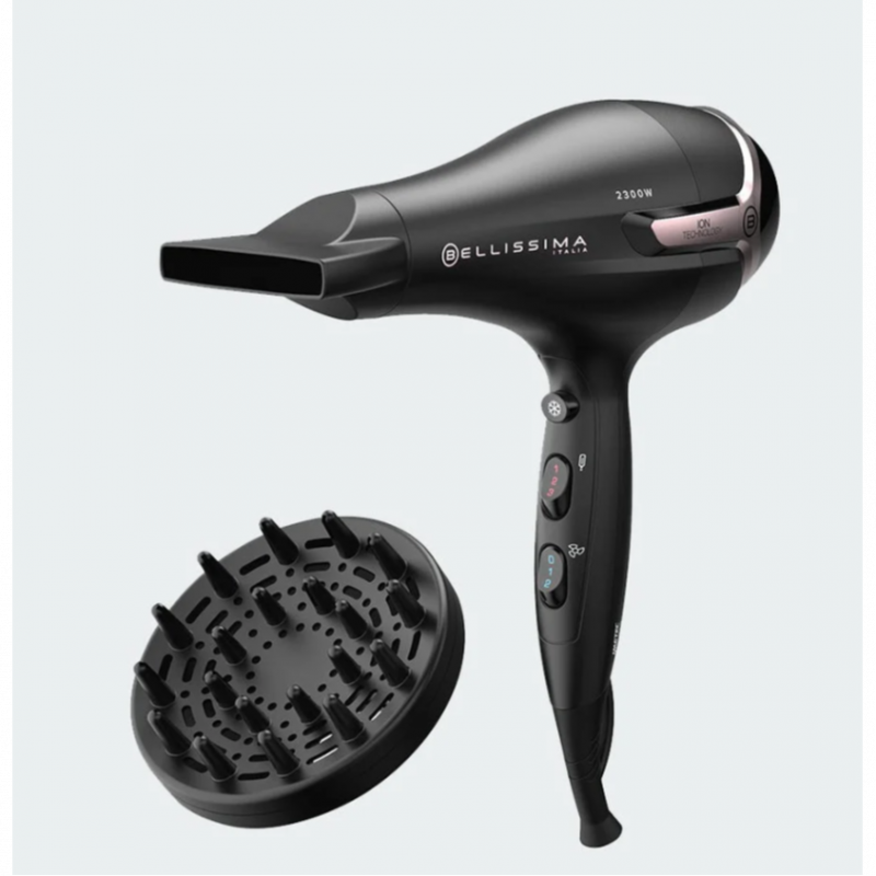 Grykë përqëndruese precize, difuzor profesional dhe çantë beauty të përfshira.
