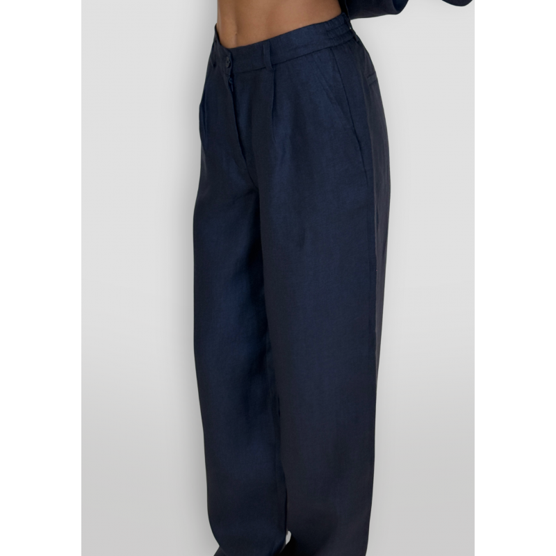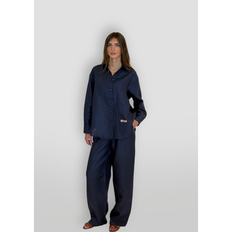 The Classic Long Heavy Linen Set for Women - Navy