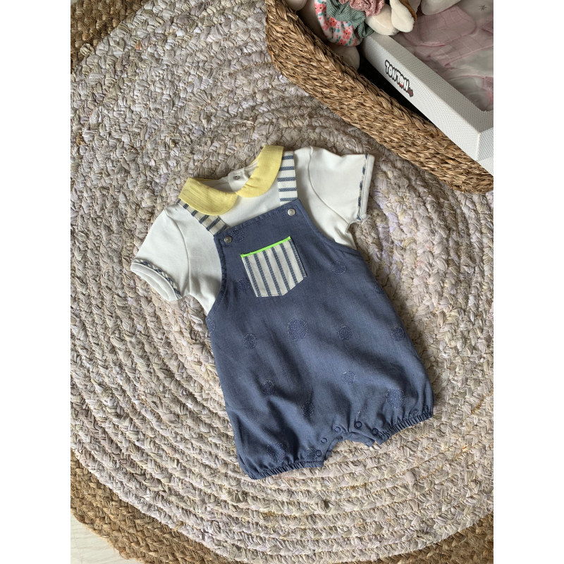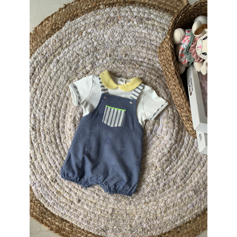 Palicet i shkurter.Bluza vjen ne forme kemishe dhe paliceta mberthehet me kopsa dhe ka xhep para.Bluza ka material pambuk dhe paliceta material lino.