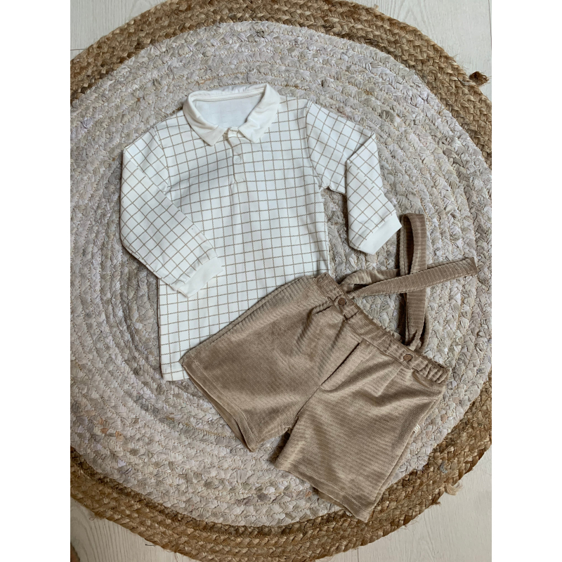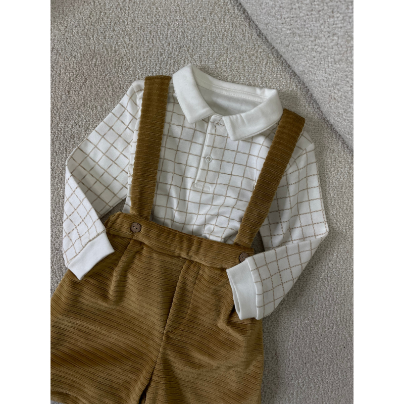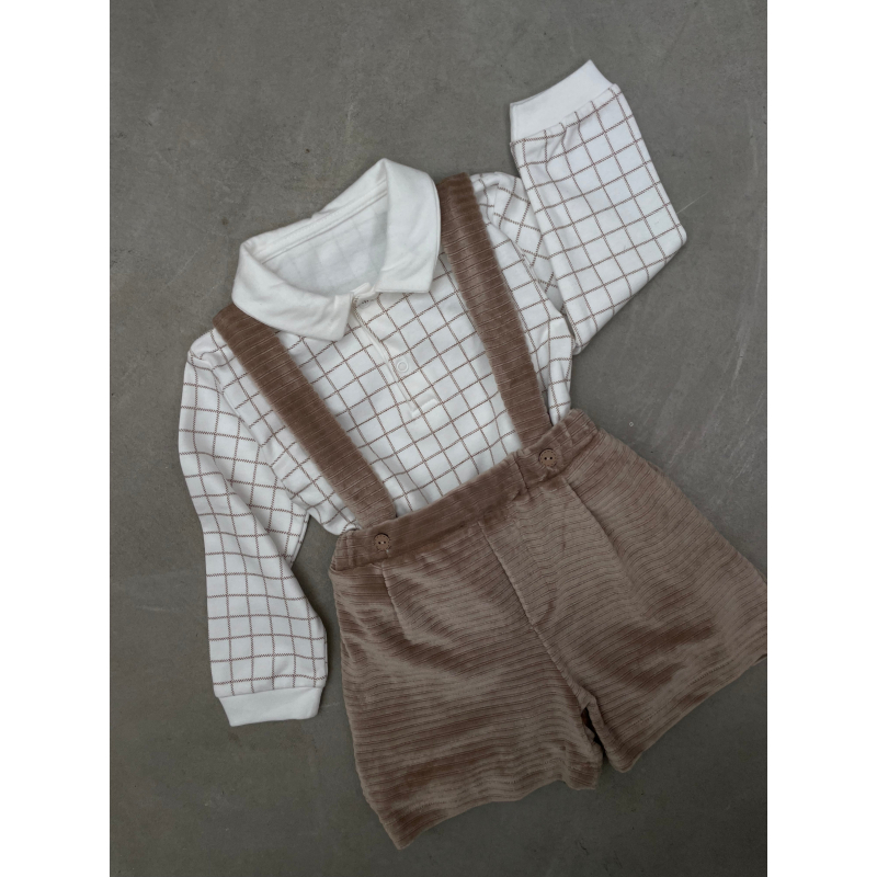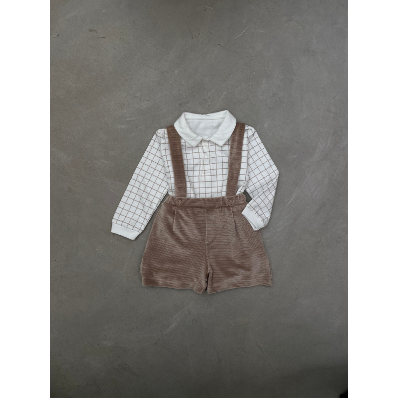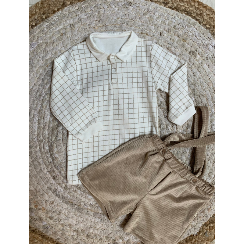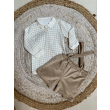 Palicet me bluze me krahe te gjata. Bluza eshte me kuadrata dhe me jake rrethore.Paliceta mberthehet me kopsa para.Paliceta dhe bluza kane material pambuk dhe cilesi fantastike.