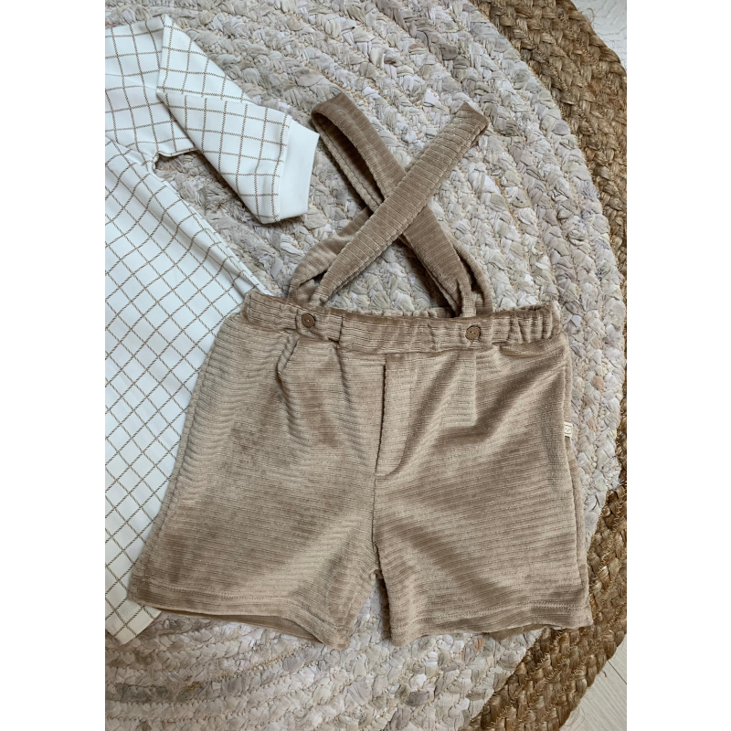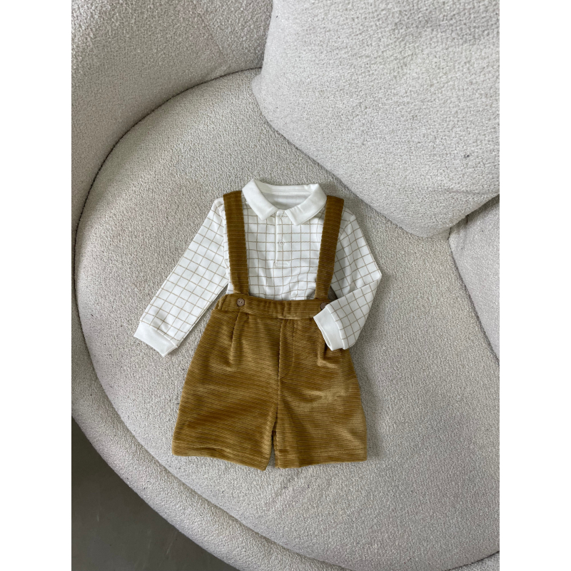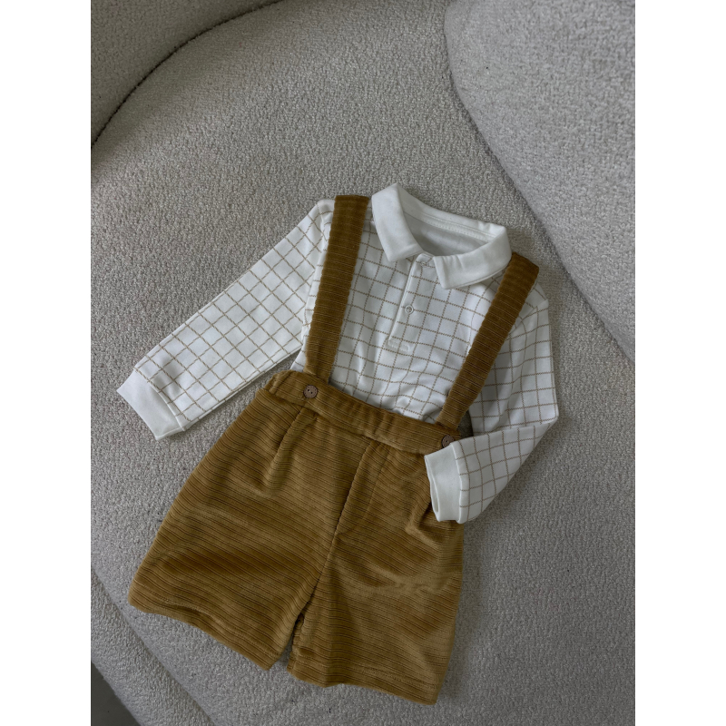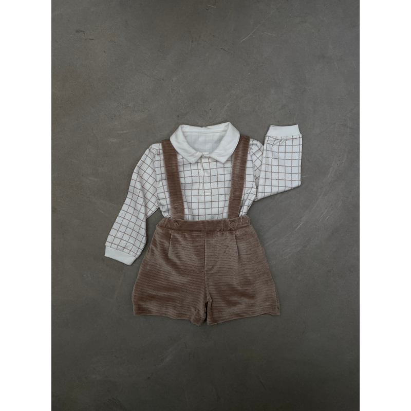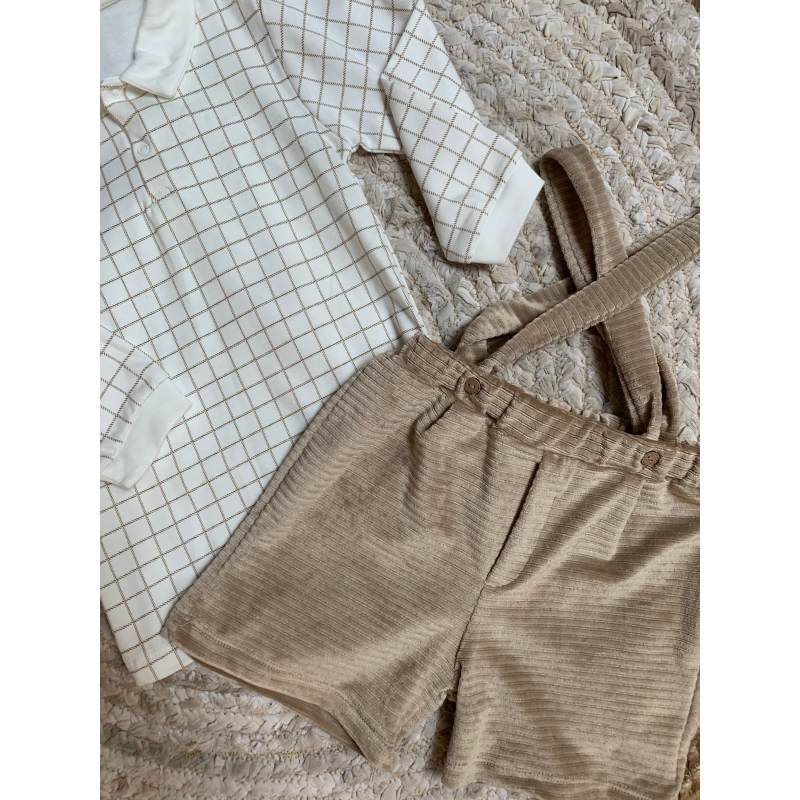 Palicet me bluze me krahe te gjata. Bluza eshte me kuadrata dhe me jake rrethore.Paliceta mberthehet me kopsa para.Paliceta dhe bluza kane material pambuk dhe cilesi fantastike.