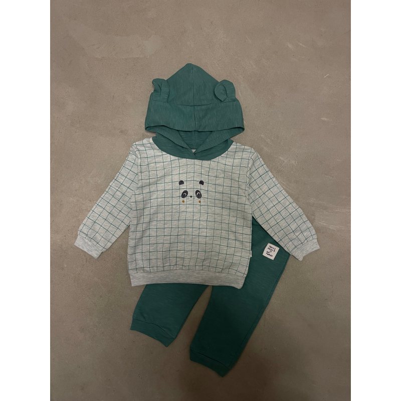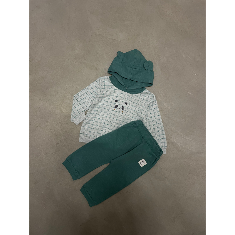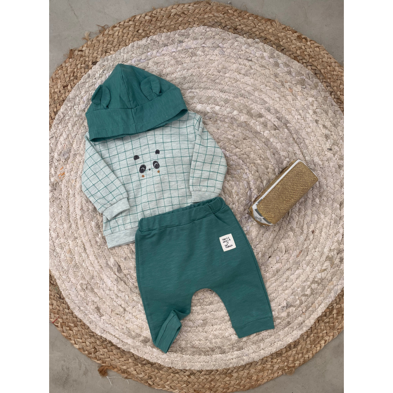 Set per beba .Bluze pambuku me kuadrata dhe me kapuc.Tutat jane pambuk dhe kane cilesi fantastike.
