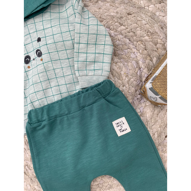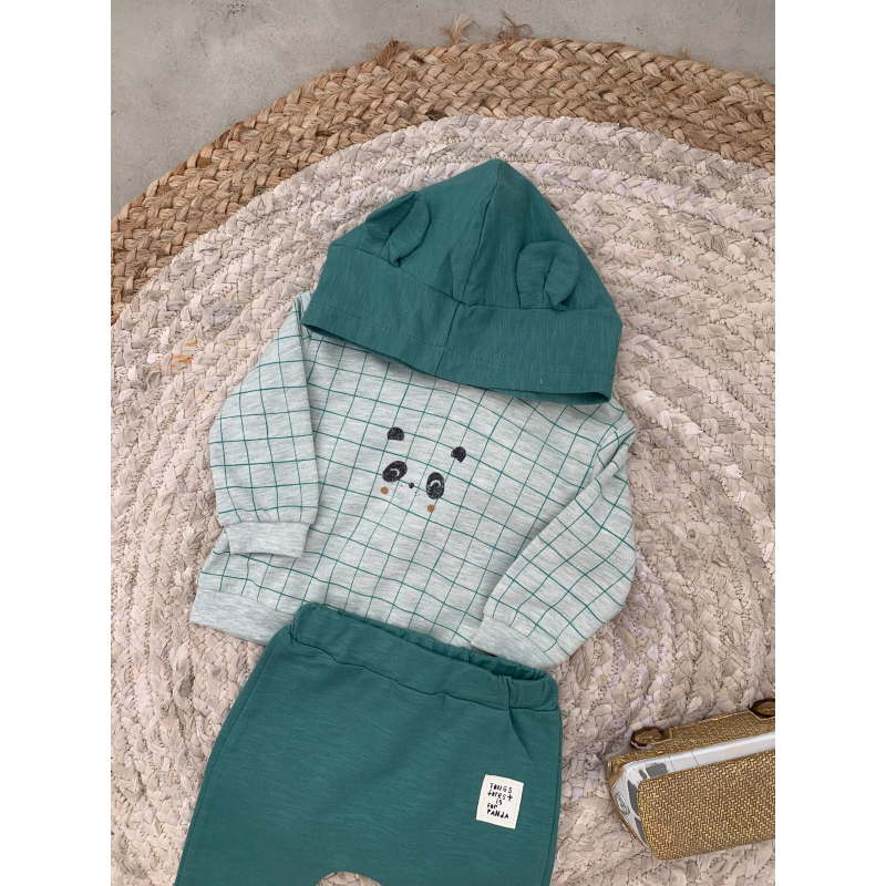 Set per beba .Bluze pambuku me kuadrata dhe me kapuc.Tutat jane pambuk dhe kane cilesi fantastike.