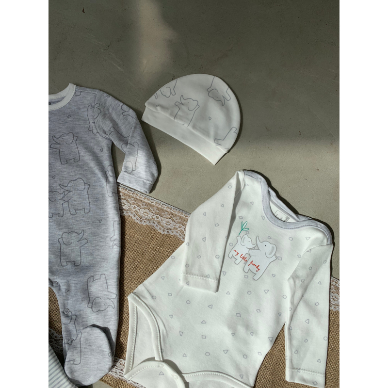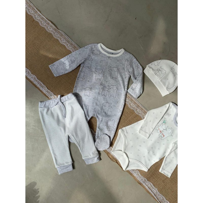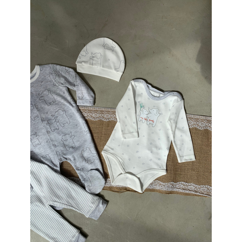 Set per te porsalindurit. Vjen me body, bluze, tuta dhe kapuc. Ka material te plote pambuku dhe cilesi fantastike. Detaje super te bukura dhe teper komode.