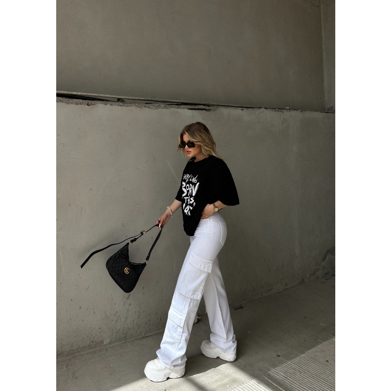 T-shirt me shkrim para.Vjen ne stil oversize.Material i plote cilesi fantastike.