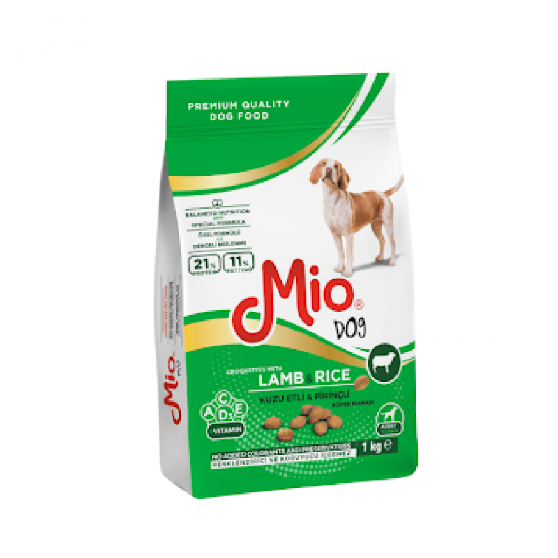 Ushqim për qen të rritur me mish qingji dhe oriz. Me vitamina A, C, D3, E. 2.5kg.