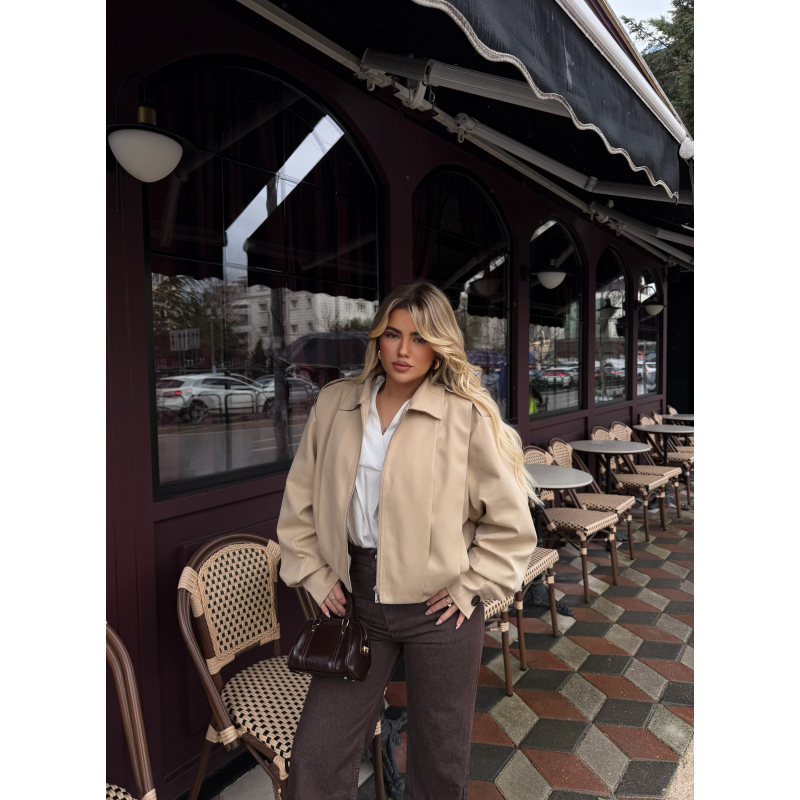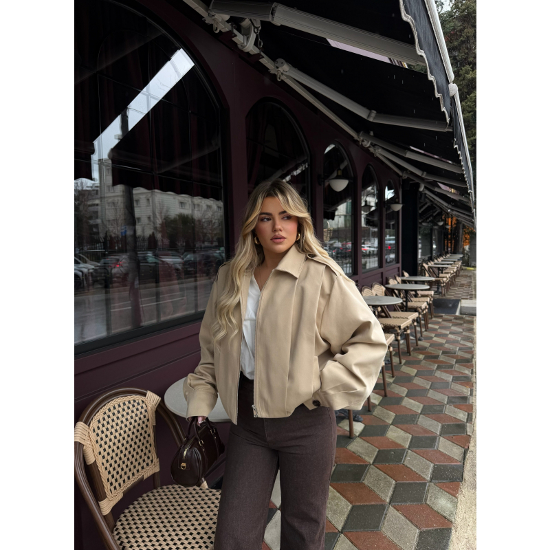 Xhakete e shkurter ne ngjyren bezhe. Xhaketa vjen me zinxhire dhe dy xhepa perpara. Material i bute dhe komode. Lehtesishte e kombinueshme ne perditshmerin tuaj.