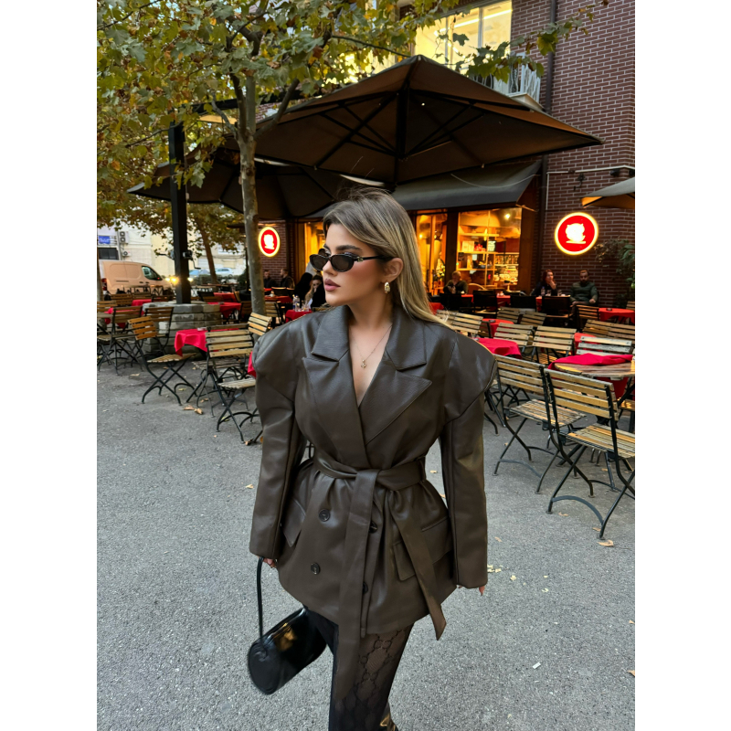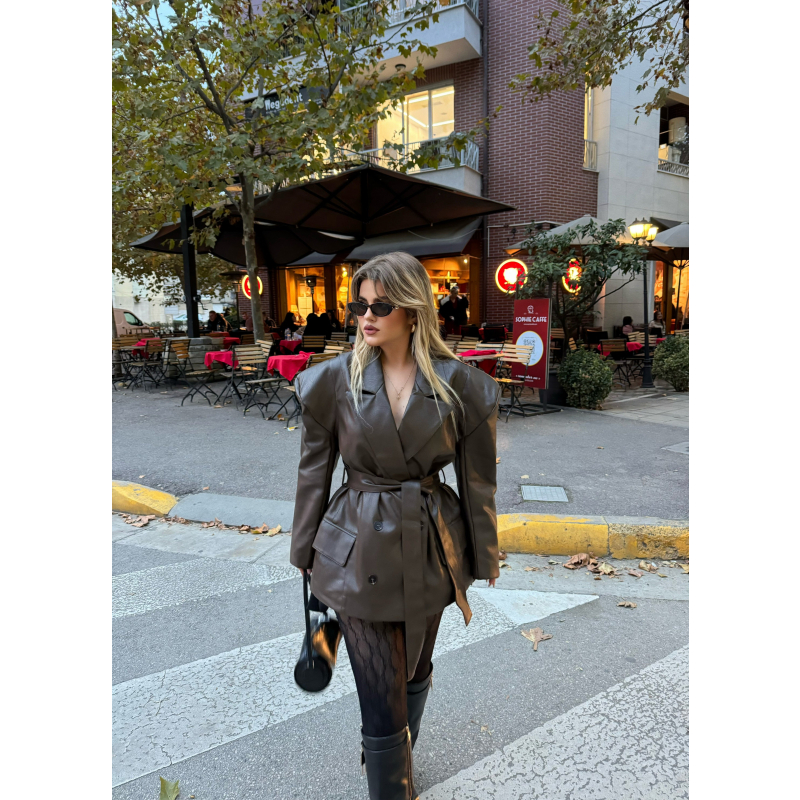 Xhakete lekure ne ngjyren kafe me kopsa perpara. Material cilesore. Lehtesishte e kombinueshme.