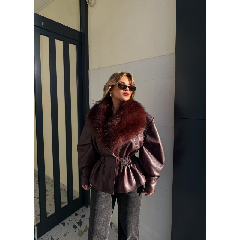 Xhakete lekure me pellush brenda ne ngjyren vishnje dhe kafe. Vjen me llastik ne bel , thekson mjaft bukur trupin dhe mbyllet me kopse. Teper e ngrohte dhe perfekte per perditshmeri.