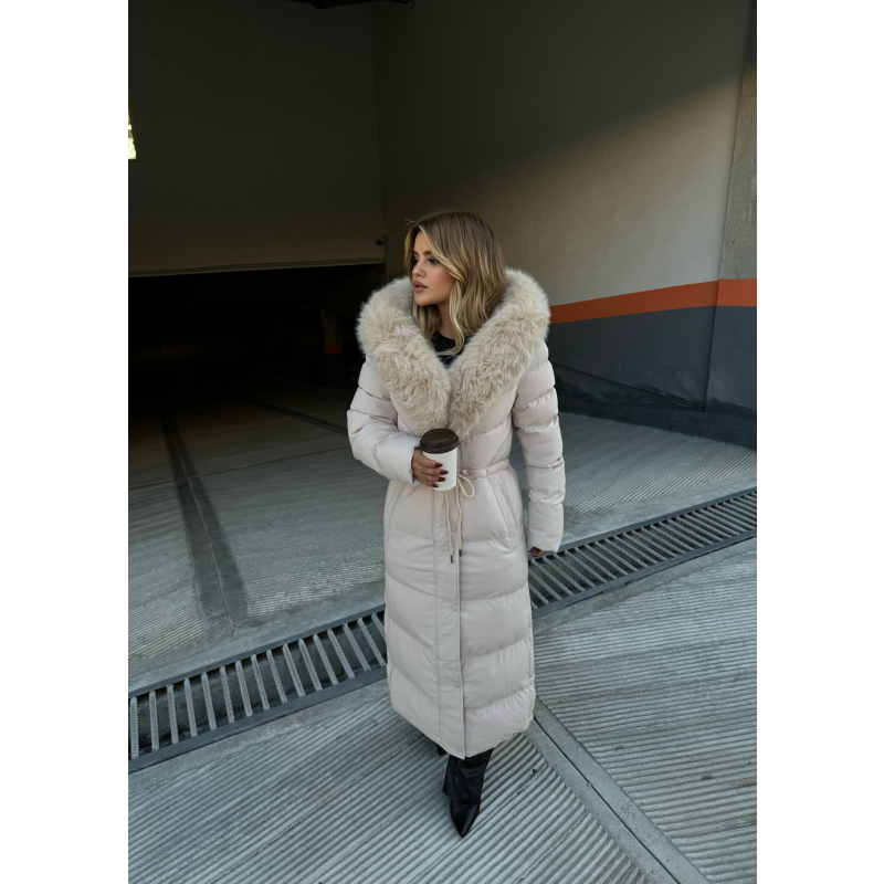 Xhup i gjate me pellush tek jaka. Vjen me lidhese tek beli. Ka kopsa ne fund tek pjeset anesore. Teper i ngrohte.