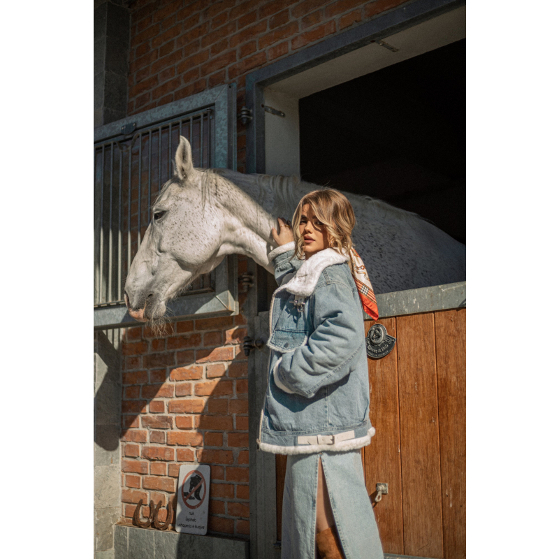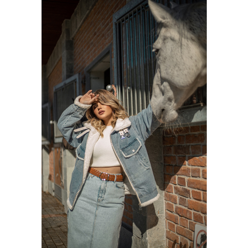Xhup xhins me jake me pellush me menge te gjata. Mberthimi behet me zinxhir ne pjesen e perparme. E kombinueshme dhe figurante.